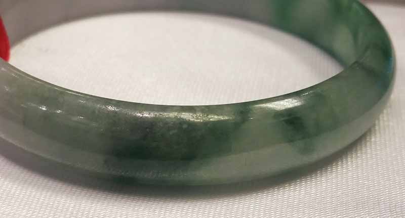 Unfortunately, there are often dark inclusions in areas where the best green colour is present. Therefore, it is sometimes very hard to avoid, especially when you are trying to cut out a bangle of a certain size. Cabochons, bead necklaces, or smaller dime-sized jade cabochons used for rings and pendants are easier to cut out. Another way to avoid having these imperfections in your jade is to carve a design over them—for example, a Buddha or other meaningful motif that will be attractive to a destined owner.