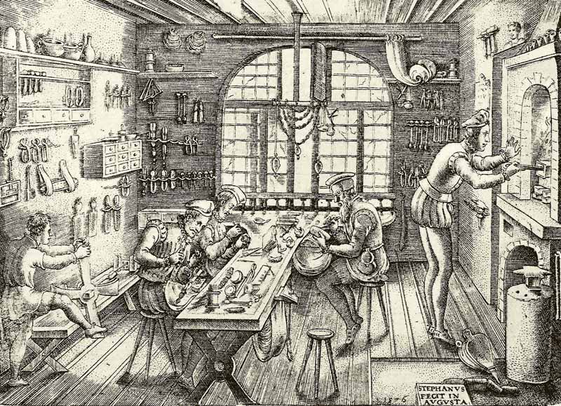 Étienne Delaune, a French goldsmith who worked in Paris in the 1550s, created a number of engraved prints. Among those prints were a few depictions of goldsmiths’ workshops. These 400-year-old engravings show files, draw benches, drawplates, hammers, stakes, pliers, bench pins, and draw tongs, among other tools, which look the same or extraordinarily similar to the hand tools we still commonly use in our jewellery repair shops and custom jewellery stores today. If we in the jewellery trade are still using the same hand tools we have for hundreds of years, perhaps the industry really hasn’t changed that much.