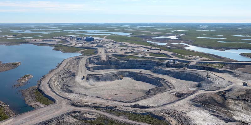 An exploration program currently underway at the Northwest Territories’ Gahcho Kué mine has started to pay off. Drill testing in the corridor between the 5034 and Tuzo kimberlite pipes, completed in accordance with the mine’s three goals, has revealed more kimberlitic material with true intercepts up to 72 m (236 ft) in thickness. Located mainly between 5034’s north lobe and the North Pipe, the material extends to a depth of 248 to 350 m (813 to 1148 ft).