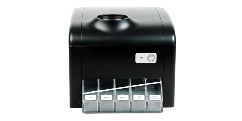 Designed to detect all synthetics and simulants, the machine verifies the authenticity of natural melee diamonds ranging in size from 1.3 mm (one point) to 3.8 mm (20 points). It is fully automated, handling up to 360 stones per hour or 500 carats at any given time.